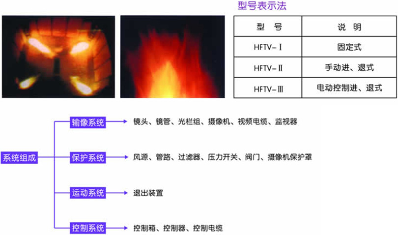 主要技术参数1、观察视场角:90°2、光栏孔径:φ2~φ18mm可调3、潜望管耐热温度:1800℃4、保护罩环境温度:-10℃~70℃5、风源:(1)仪表风源:风压≥0.15MPa,流量≥15m3/h,风温≤50℃,尘埃粒 径≤3μm,含油量≤10mg/m3 (2)鼓风机风源:现场风压≥2000Pa,流量≥200m3/h6、退出装置:进退行程600mm7、工作电源:220V/50HZ/200W